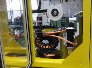 igus® twisterband TB30 pour un mouvement rotatif de 360° et igus® E2 mini ainsi que les chaînes électroniques E2/000® dans cette unité de chargement et de déchargement.