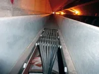 Dans cette application, une bande de 548 pieds de long transporte le charbon dans les silos. Les wagons de vidange de la trémie ont besoin d'une alimentation en énergie qui s'adapte à l'espace restreint et fonctionne de manière très fiable dans des conditions extrêmement poussiéreuses. Les systèmes de festonnage n'ont pas pu être utilisés en raison de leur hauteur. Les tambours de câbles seraient trop lourds. Une chaîne igus® e-chain® de la série 3838, y compris le canal de guidage, prend très peu de place. Divers câbles chainflex® sont également utilisés.**