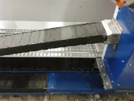 La poussière et les limailles métalliques de cette fraiseuse pour pièces de carrosserie ont endommagé à plusieurs reprises les lignes d'alimentation en électricité, en air comprimé et en liquide de refroidissement. Ces dommages ont entraîné une défaillance de la machine. L'utilisation d'un tube énergétique de type R4-42 de la série igus® E4-1 a permis de réduire considérablement les temps d'arrêt, car le tube est étanche à l'air et protège ainsi les conduites de manière fiable contre les limailles.**