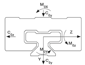 Pour un calcul correct du système de guidage linéaire DryLin® T, il faut déterminer si les forces exercées se situent dans les limites admissibles et si elles ne surchargent pas l'élément de glissement où se produisent les forces les plus élevées.