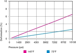 Les bagues en plastique iglide® A290 ont une pression de surface maximale recommandée de 10 150 psi. À cette charge, la déformation à température ambiante n'est que de 2,5 %. La déformation plastique est proche de zéro jusqu'à cette charge. Cependant, elle est également affectée par la durée du cycle.