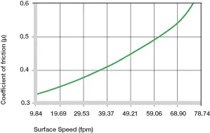 Figure 2.4 : Coefficients de frottement en fonction de la vitesse de la surface, p = 108 psi