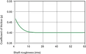 Le coefficient de frottement évolue comme la résistance à l'usure avec l'augmentation de la charge et de la vitesse de la surface. Lorsque la vitesse augmente et que la charge est constante, le coefficient de frottement augmente régulièrement. En revanche, on observe un comportement inverse lorsque la charge augmente et que la vitesse est constante (voir les figures 9.4 et 9.5). Les arbres très lisses augmentent le coefficient de frottement et d'usure. iglide® A290 s'avère relativement insensible aux surfaces des arbres et conserve un coefficient de frottement µ de 0,4 avec des états de surface moyens de Ra = 0,4 à 1,6 µm.