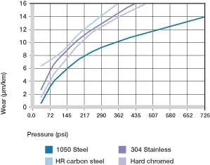 Les températures régnant dans le système de bagues ont également une influence sur l'usure des bagues. L'usure augmente avec la température et l'influence est particulièrement marquée à partir d'une température de 248°F.