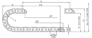Pitch: 5.63 (143 mm) per link = 3 links/ft (7/m)