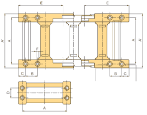 Pitch: 3.58 (91 mm) per link = 4 links/ft (11/m)