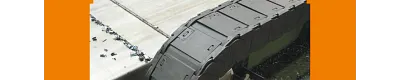 This portal milling machine is used to manufacture points forrailway networks. In the case of this process, hot metal chipswith a temperature of more than 600 degrees Celsius are produced. The previously used energy system was usually wornout after nine months; the cables were destroyed by the metalchips, which resulted in production shutdowns. Remedialaction was provided here by the completely sealed igus® energytube system E4 cable carrier, which is made of the high-temperaturematerial igumid HT from which the hot metal chips with a temperatureof up to 850 degrees Celsius simply bounce off the cable carrier withoutleaving a trace.