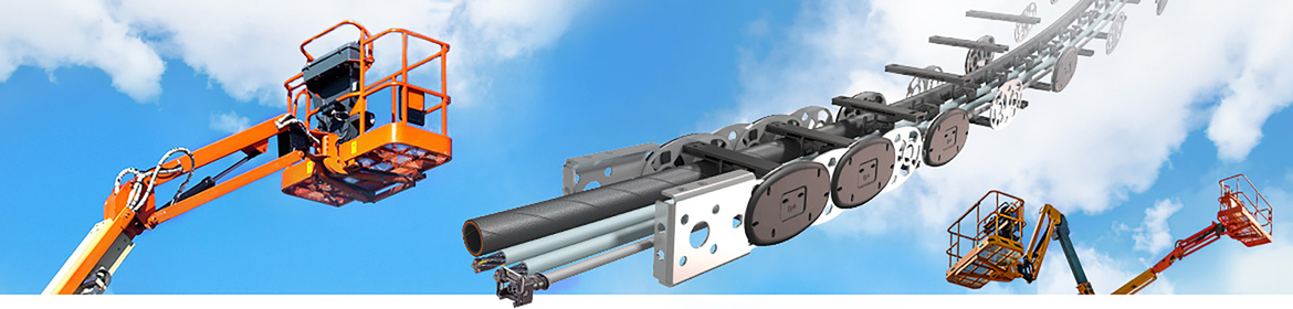 Aerial lifts, telescopic boom platforms and cherry pickers offer very little space for the safe travel of energy, which is why so many engineers turn to e-chain® cable carriers made of high-performance plastics, or a plastic-steel hybrid, from igus to protect their moving cables and hoses. igus® spare parts for guidance, transmission and bearing systems in telescopic lifting work platforms such as energy chains or drag chains, cables and supply lines as well as plastic plain bearings, linear bearings or sliding plates meet the harsh conditions of outdoor and permanently stressed devices.
