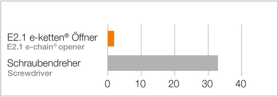 With the new chain opener, the E2.1 energy chains can be opened very quickly by hand metre by metre. This tool is a must-have for anyone who purchases and uses the E2.1 chain as a product sold by the metre: the chain opener reduces the time needed to open the chain by a factor of 16.