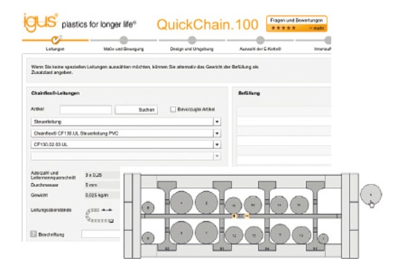 Il y a 43 ans, igus® présentait la première chaîne porte-câbles en polymères. Maintenant, l´entreprise a la plus vaste gamme de chaînes porte-câbles en polymères et de câbles flexibles au monde. Cette gamme aussi vaste que polyvalente permet au client, par l´intermédiaire d´un outil en ligne, de choisir sa chaîne porte-câbles, ses câbles et ses connecteurs et même d´en calculer la durée de vie.