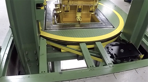 This cable robot is used in automated high-bay shelving systems.