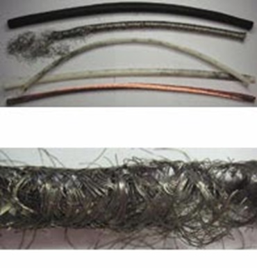 Les examens de détail (photo 3) des fils de blindage, des fibres tampon, du film en Téflon et du conducteur ne montrent aucune trace d´usure. L´essai se poursuit afin de déterminer la durée de vie maximale du câble.