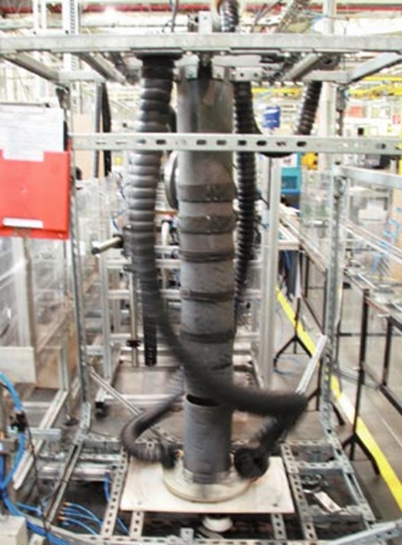 Mais les applications industrielles et les suites de mouvements qu´elles exigent sont de plus en plus complexes, si bien que des câbles spéciaux destinés aux mouvements de torsion sont de plus en plus fréquemment exigés. La durée de vie des structures les plus diverses est encore plus difficile à déterminer en présence de torsions, en l´absence de paramètres fixes tels que le rayon, la course, etc. Les câbles blindés posent, quant à eux, généralement problème en présence de torsions. Le blindage est en règle générale tressé dans les deux sens. De ce fait, la tenue ou non d´un câble face à des sollicitations en torsion dépend fortement de l´application et du type d´installation.