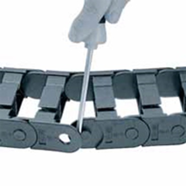 Câbles et flexibles peuvent être insérés facilement dans la chaîne par simple pression du pouce. Cela permet de gagner jusqu´à 80% de temps au montage.