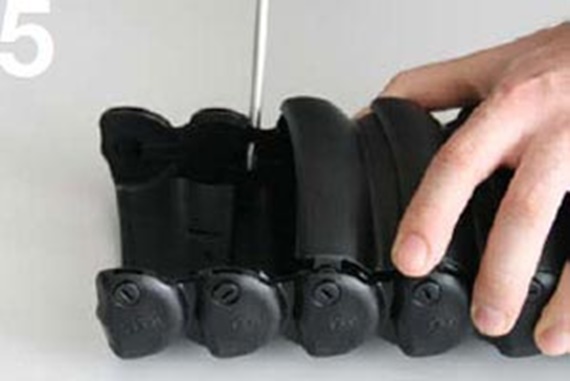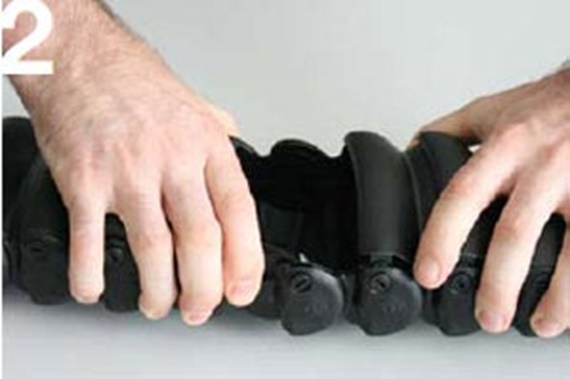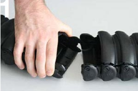 Press the bolt on the chain link into the hole using a little pressure, whilst bending the tube somewhat into the radius if necessary, until the bolt clicks in place.