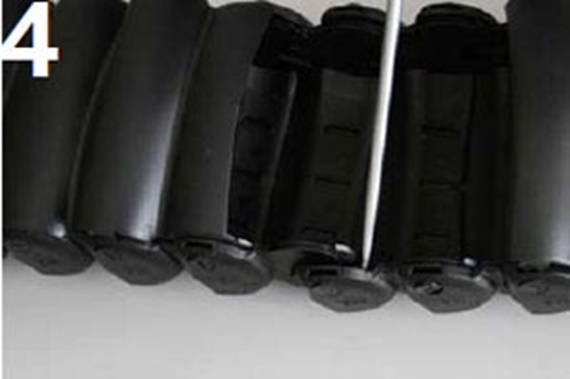 Then remove 1 lid before, 1 after and the one from the chain link being replaced, so that 2 links are open.