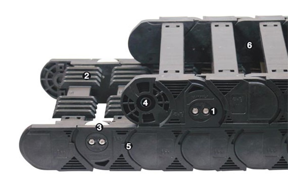 Système de Chaînes Porte-Câbles à roulettes en polymères tribo-optimisés, exigeant peu d´entretien