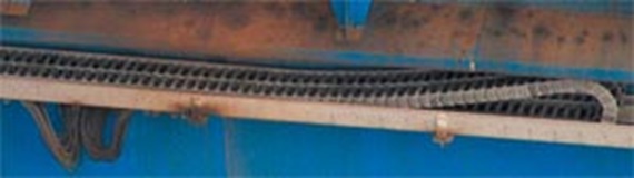 Examen actuel Le câble chainflex® CF9.60.05 est utilisé depuis des années dans des grues de manutention de conteneurs, et dans le cas présent pour une course totale d´environ 47 m. La demande d´examen formulée par l´exploitant devait servir à faire un bilan de performances après plus de 40.000 kilomètres parcourus par la Chaîne Porte-Câbles et à déterminer à partir de quand un entretien préventif devrait avoir lieu pour les autres appareils.