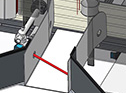 With this production machine, small plastic spray bottles must be guided from a rotary table through a small opening onto the conveyor belt.