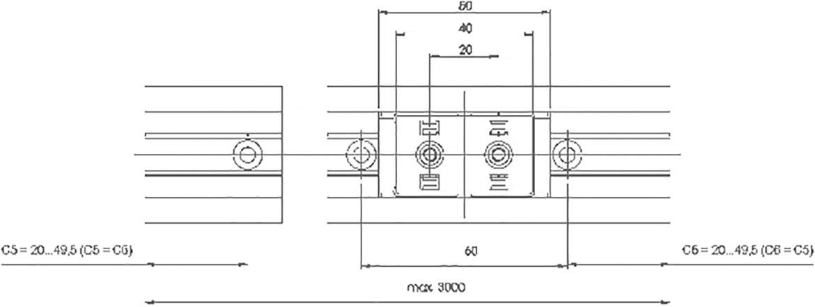 | N° de commande | Longueur d´arbre maxi | a | C4 | A3 | C5=C6 | h | h1 | K1* | ly | lz | Poids du rail | Prix / m | ||