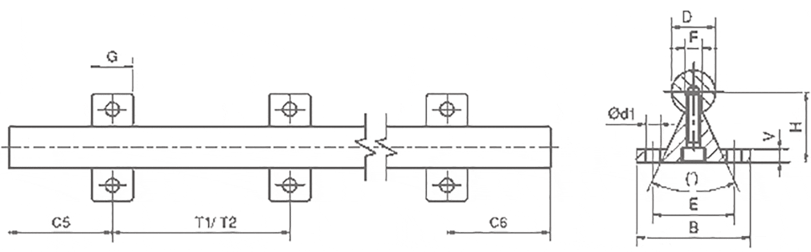 D h6 | B | H | V | d1 | E | G | T1 | C5/C6 for T1 | C5/C6 for T1 | T2 | C5/C6 for T2 | C5/C6 for T2 | Price / m | |