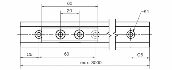| N° de commande | Longueur d´arbre maxi | a | C4 | A3 | C5=C6 | h | h1 | K1* | ly | lz | Poids du rail | Prix / m | ||