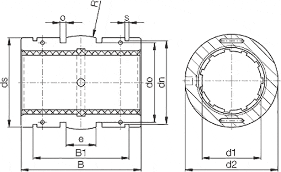 | Order no. | d1 | d2 | d2-tolerance Lower limit | d2-tolerance Upper limit | B | B1 | s | dn | ds | do | o | e | R |