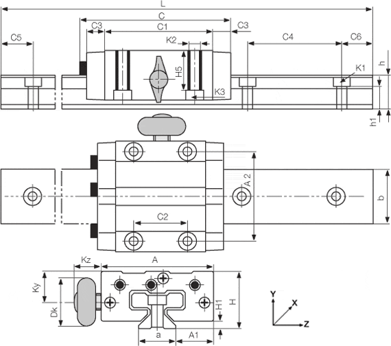 | Référence | Taille | Kz | Ky | Dk | Taraudage de la vis de blocage |