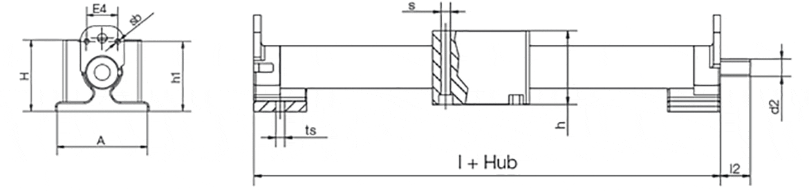 | N° de commande | A | Al | H | E1 | E2 | E3 | E4 | l | h | h1 | lt | ts | s | sb | l2 | d2 |