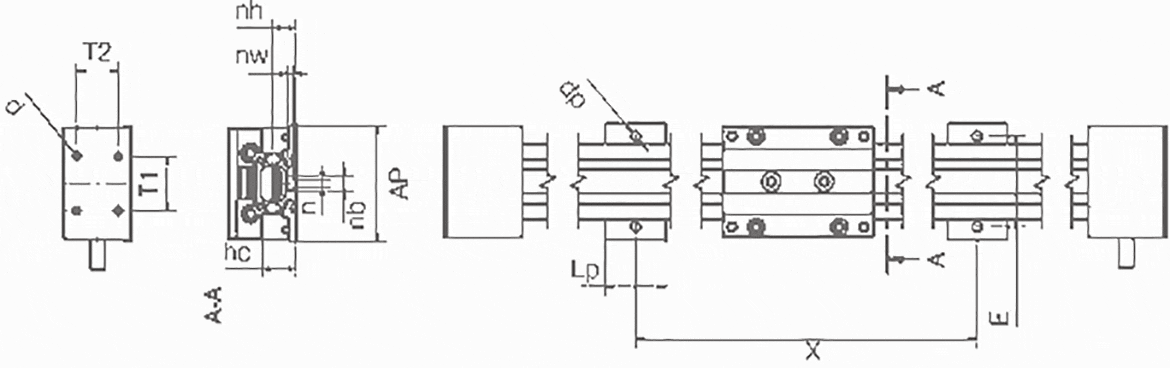 | N° de commande | lt ±0,3 | sg | ha | lz | l2 | d2 | X | E ±0,2 | AP -l | LP | dp | n | nb | nw | nh | T1 | T2 | d |