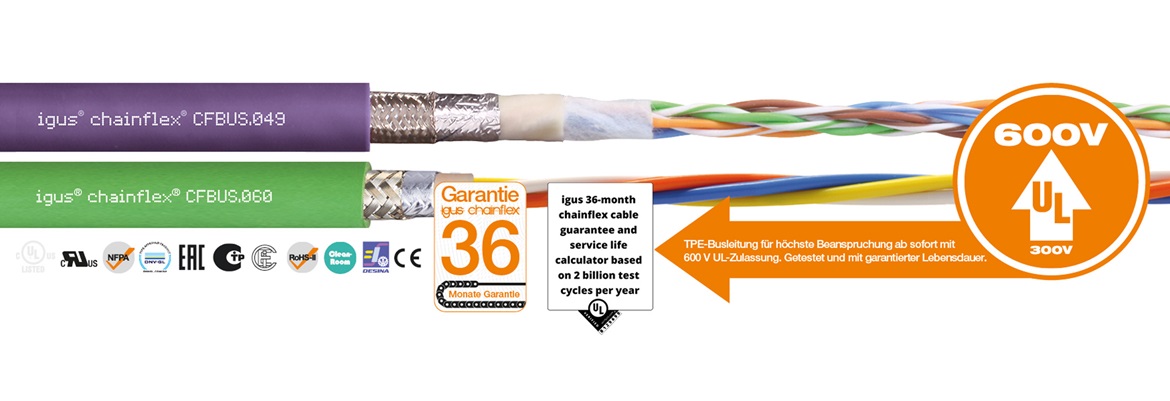 Conséquence logique de cette exigence technologique, igus a été la première entreprise européenne qui a fait valider par un organisme extérieur, en 2020, la promesse de marque pour ses câbles chainflex. Au terme d'un processus de certification complexe, l'institut américain « Underwriters Laboratories » a confirmé l'exactitude de l'affirmation « igus 36-month chainflex cable guarantee and service life calculator based on 2 billion test cycles per year ». igus est ainsi la première entreprise d'Europe a avoir fait confirmer par une institution de contrôle de réputation internationale la véracité de son affirmation publicitaire.