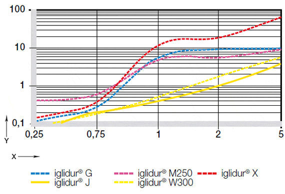L'usure des paliers dépend largement des charges. Parmi les paliers iglidur®, certains sont parfaitement adaptés aux faibles charges alors que d'autres conviennent mieux aux charges élevées ou extrêmement élevées. L'iglidur® J combiné à des arbres trempés est le matériau le plus résistant à l'usure qui soit, pour les faibles charges. L'iglidur® Q est, quant à lui, le spécialiste des charges extrêmement élevées.