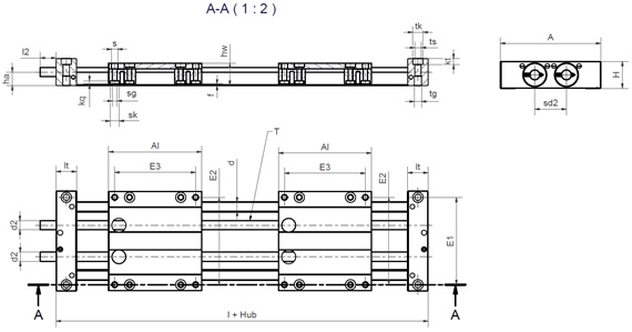 | Réf. | Course max. | Poids de l´arbre | Force stat. admis. maxi | Matériau bride support d´arbre | ||||
