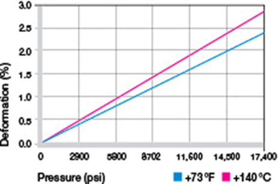 Figure 02: Maximum recommended static surface pressure based on temperature (21,670 psi at +68°F)
