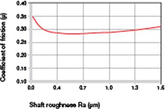 The friction and wear are also dependent, to a large degree, on the shaft material. Shafts that are too smooth increase both the coefficient of friction and the wear of the plain bearing. The best shaft for iglide® X6 has a ground surface with an average roughness of Ra = 0.4 - 0.7 μm (figure 06).