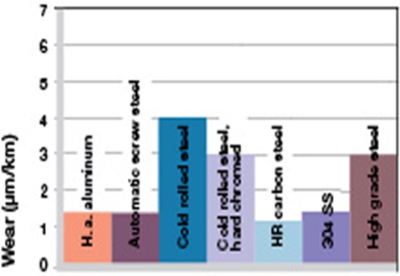 Figure 07: Wear rotating with different shaft materials, p = 145 psi, v = 59 fpm