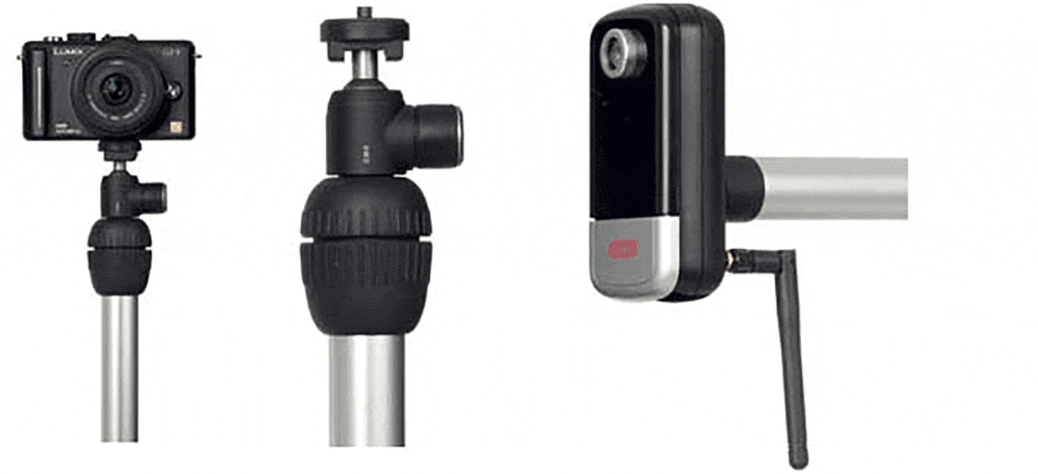 With standard ball joint for connection to camera thread 1/4" UNC, with cable feed through for camera cable or power supply. Cables can be laid through the articulated arm.