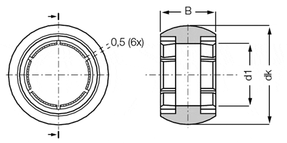 | Order no. | d1 E10 | d2 | C | B | Max. angle | Max. static pressure load radial [lbs] | Max. static pressure load axial [lbs] | ||