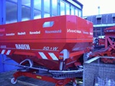 The fertiliser spreaders from RAUCH Landmaschinenfabrik GmbH, such as the model AXIS 50.1 W in this case, dose with the highest precision when spreading fertiliser evenly on the field. Here, all components used in the fertiliser spreader must be corrosion-free and designed for the high content of ammonia in the fertiliser. This is also the case in the boundary spreading device, which limits the spreading area of the fertiliser to enable more targeted and efficient spreading. Here, clevis joints are used in combination with a KMF hydraulic cylinder, which must be able to permanently withstand the adverse conditions.