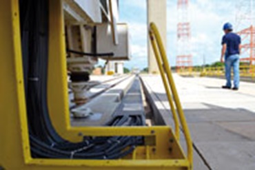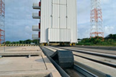 Space rockets are assembled in a mobile hall to protect them before they take off. The hall is then moved away before lift-off. The complete energy supply for the hall is routed in igus® e-chains® so that they can be moved without any problems. e-chains® are also used in the hall itself.
