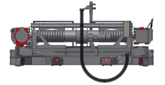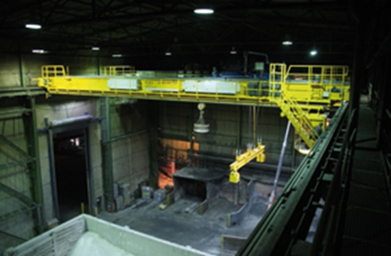This crane transports billets with the help of a magnet traverse in a steelwork. To optimize the energy supply of the slewing gear, the developers used an e-chain® of the series triflex® from igus® instead of the former conductor line. It uses the space underneath the trolley where sufficient free space is available. Therefore the space on the accessible slewing gear remains accessible for servicing and maintenance.