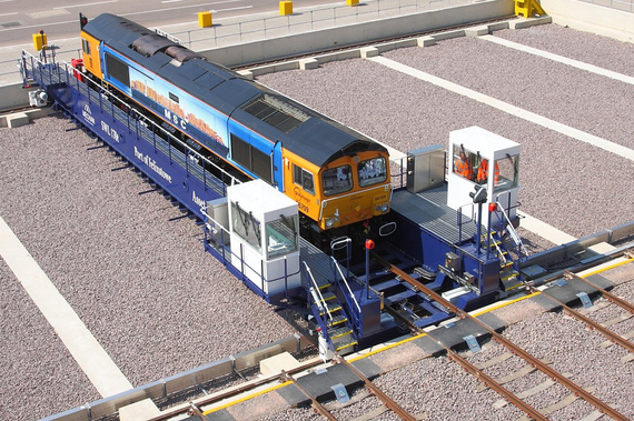 This transfer table in the English harbour town of Felixstowe ensures that railway engines are moved quickly to the correct one of eight tracks. Engines weighing up to 170 tonnes are pushed over a distance of more than 30 metres. To route the cables from the control unit to the transfer table safely in the long term even under the extreme weather conditions and salty air at the harbour, and to keep maintenance times to a minimum, the operator decided in favour of a stainless steel flizz® system from igus® which uses an e-chain® of the E4 serie and chainflex® cables.